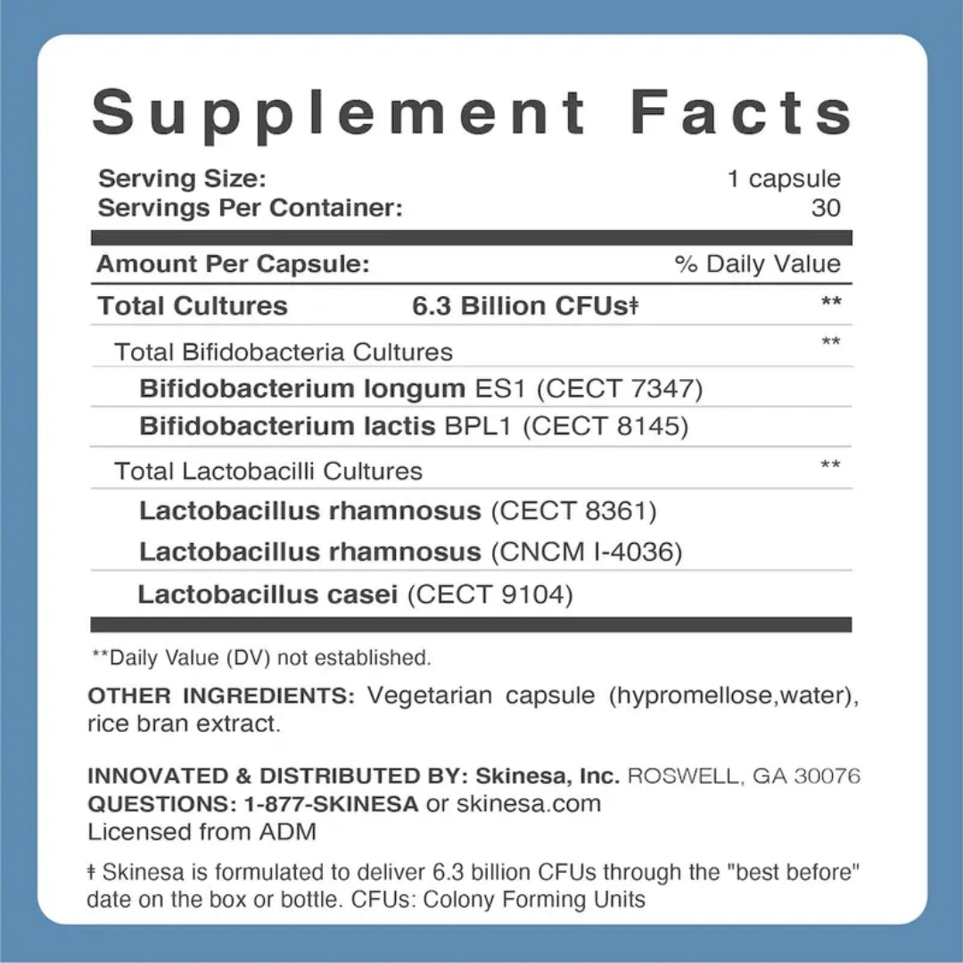 A skin health breakthrough from over a decade of university research, Skinesa® is an award-winning probiotic supplement designed by experts to promote healthy skin. Probiotics are live microorganisms that deliver a health benefit.